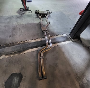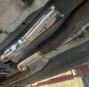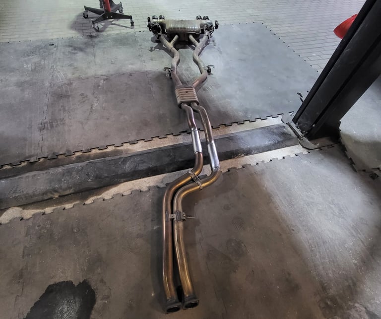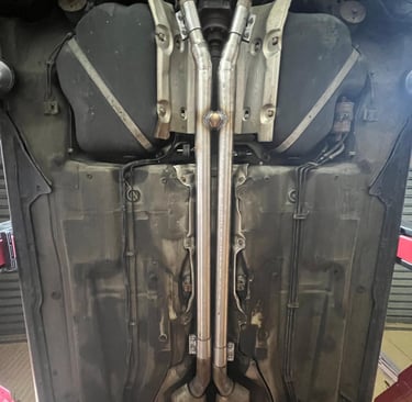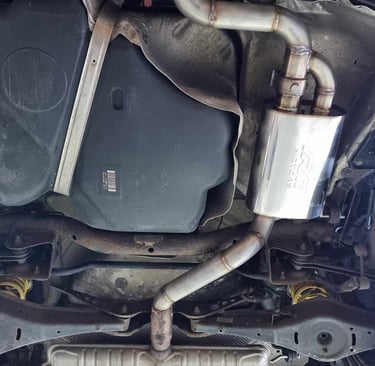 Usunięcie katalizatorów środkowych (rury są spłaszczane fabrycznie co utrudnia dopasowanie), dzięki czemu, samochód nabrał agresywnego brzmienia V8 i na sport+ pojawiły się mocne popsy... :)