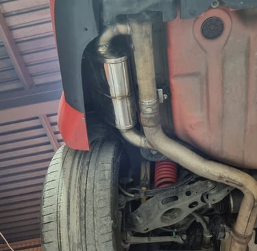 Budowa customowe układu wydechowego od podstaw, dobór tłumików do oczekiwań klienta, samochód przygotowany do driftu.