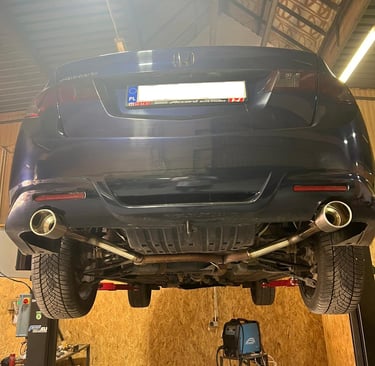 Zmodyfikowany seryjny układ wydechowy na aktywny, wpięcie rury przelotowej do istniejącego układu z klapą sterowaną z pilota.