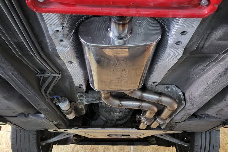 Tłumik końcowy wykonany w miejsce seryjnego (plugin and play), usunięte tłumiki, dzięki czemu został podkreślony dźwięk silnika V6.
